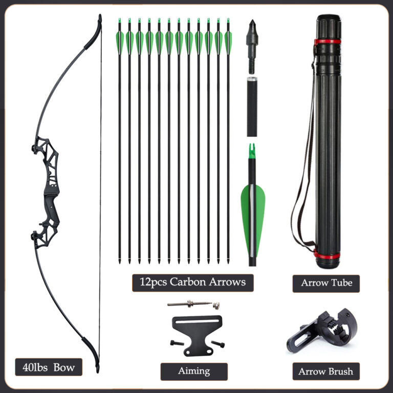 20/30/40/50lbs Archery Bow Recurve Take Down Straight Bow 12pcs Mixed Carbon Arrows Quiver Outdoor Sport Shooting Practice Bow
